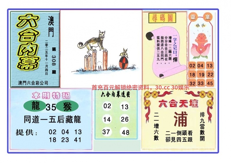 311期:密门仙机/心水特码信/黄大仙天书/波色生肖诗/生肖歇后语