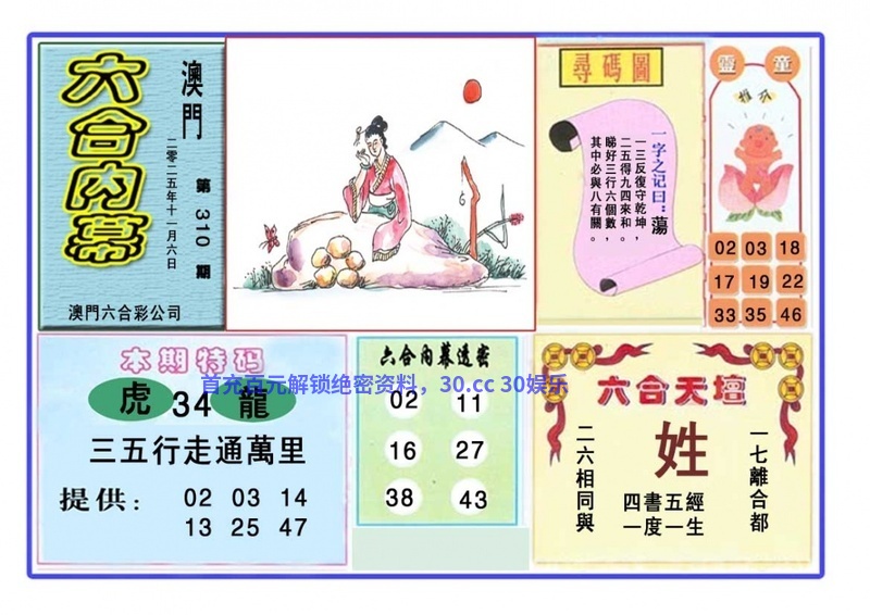 311期:白姐特段/简单发财诗/马会欲钱料/七娘一句中/开藏特图料